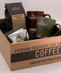 Warm hearts this season with a gift box filled with coffee, peppermint tea, and cozy mugs for two. Coffee, peppermint tea, and cozy mugs for two—all in one thoughtful gift. Our Cozy Holiday Gift Box includes fresh-roasted holiday coffee, a set of two ceramic mugs, and winter peppermint tea, all beautifully packed to spread cheer. The perfect holiday surprise for friends, family, or coworkers to remind them how much you care.