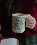 This beautiful, gloss white mug with green, imprinted design and lettering will make you love your morning coffee and quiet time with Jesus even more.
